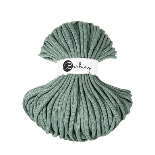 Bobbiny Jumbo 9mm – Laurel is een sterk en stijlvol katoenkoord gemaakt van 100% gerecycled katoen. De 72-strengs getwijnde structuur maakt dit garen extra stevig en slijtvast, waardoor het ideaal is voor haken, breien, macramé en het maken van woonaccessoires zoals manden, kussens, tassen, vloerkleden en wanddecoratie.